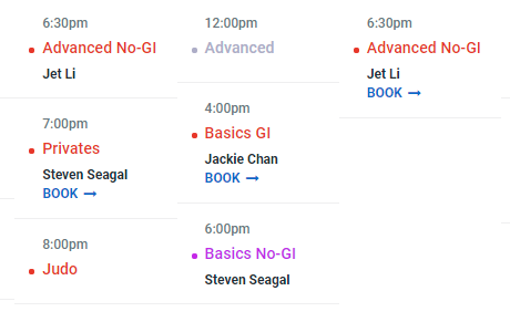 Once you have several bookable slots, those will be available for booking on the gym schedule screen. A "Book" link will appear next to those sessions -