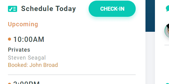 Booking an event will show a notification in your dashboard. The day of the booking, the event will show up in the dashboard under upcoming events, with the name of the person who booked the spot.