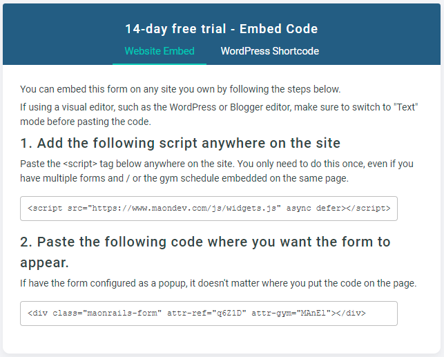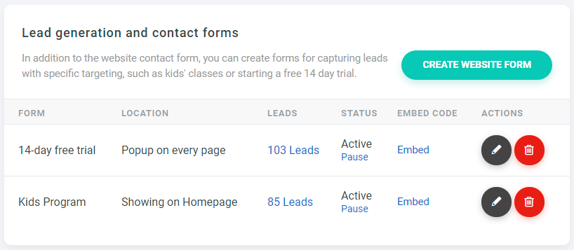 You can create different forms to capture different types of leads on your website, such as a "14-day free trial", or "Join our kids program". Email capture forms can be used on the gym website we provide through our software, or on your existing website if you have one.