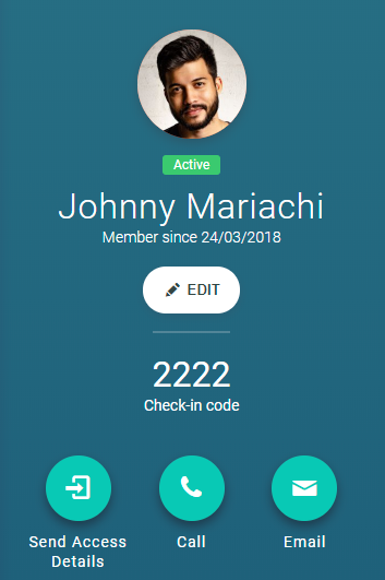 Below the check-in code, you'll find the "Send Access Details" button, if you have member accounts active. This button will generate new account access details for members who can't log-in to their account.