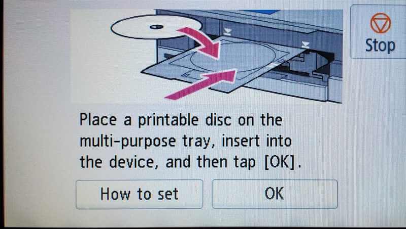 - With the Canon PIXMA TS8220 printer, you will need to wait for the printer to ask you to insert the tray. Follow the instructions on the printer and insert the tray when requested.