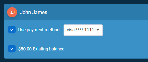 Once you select a member, you'll be able to pick from their on-file payment methods (including bank debit accounts).