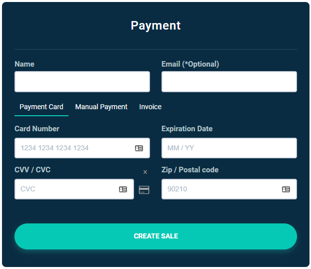 If you are accepting payments offline - cash, checks - or through a 3rd party system, you can use the "manual payment" option to create the sale without processing a payment directly.