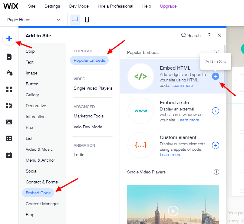 The process for embedding widgets on a Wix website is a bit different than most website editors.