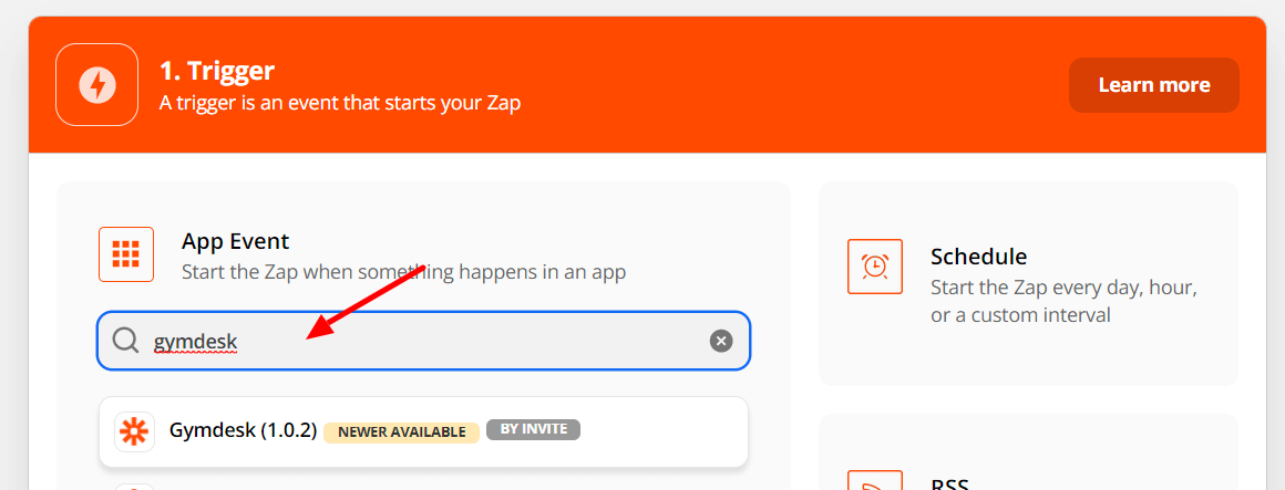 Search for "Gymdesk" in the trigger, and pick the top option that shows up.
